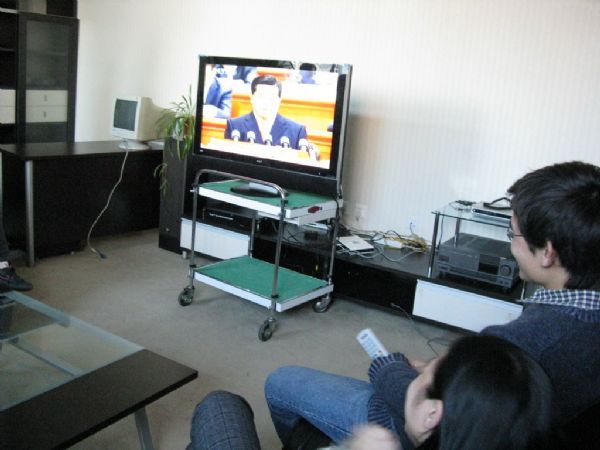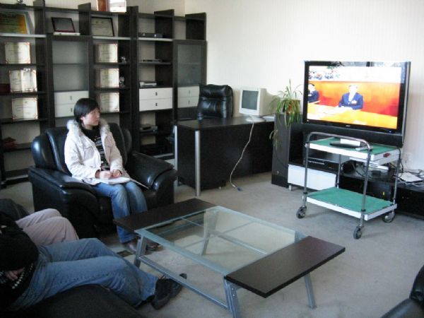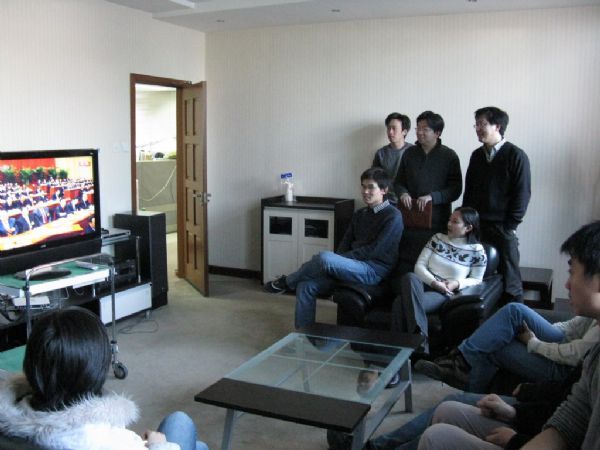 下图为网络新媒体支部收看全国政协十一届会议开幕式直播实况。