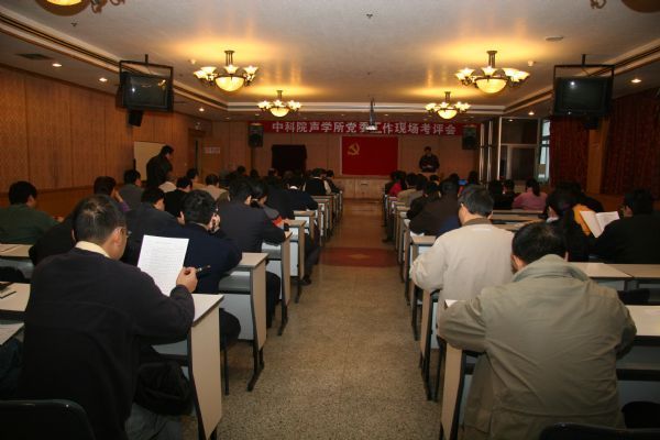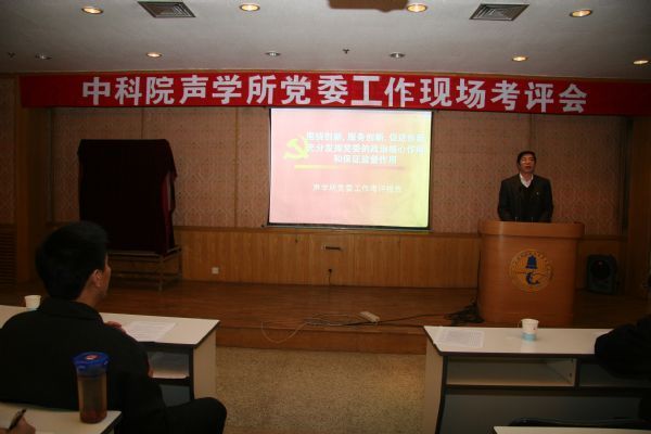 考评会由所党委委员、副所长张春华主持。党委副书记王小民代表所党委向会议作了《声学所党委工作考评报告》。报告分九个部分,对党委自2006年下半年以来的工作进行了全面总结,指出了工作中存在的不足。