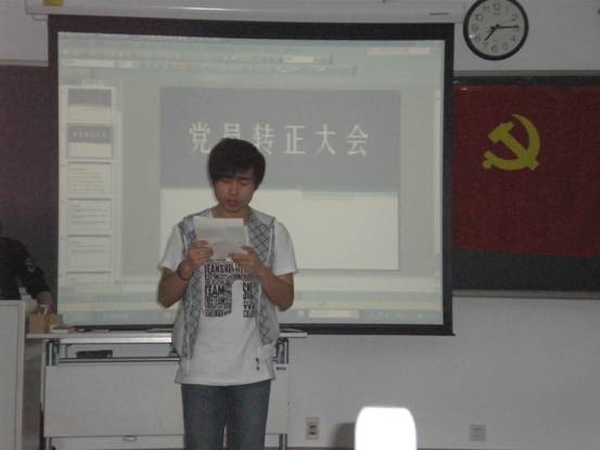 接着进行万玉龙同志的预备党员转正:由万玉龙同志汇报自己的思想、学习和工作情况,其次由入党介绍人周小咏、王文博同志介绍其有关培养和考察情况,并征求了党外群众意见,最后经305党支部全体党员以无记名投票方式,一致表决同意万玉龙同志按期转为中共正式党员。