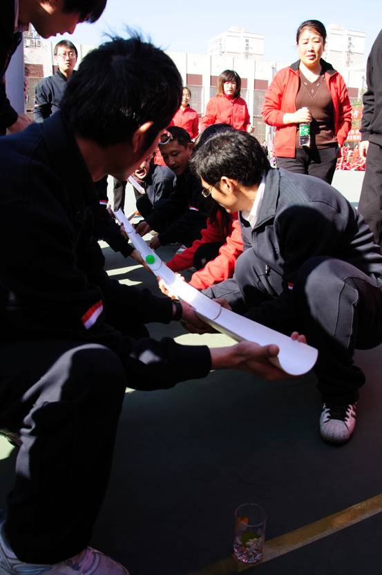开幕式过后,比赛正式开始。大会共有三个项目,分别是“能量传递”、“并腿而行”、“时代列车”。声学所代表队的20位运动健儿积极准备,互相讨论合适的方案,认真的一遍遍练习,最终圆满的完成了全部三项活动。特别是在能量传递中,队员们更是一次成功,取得优异成绩。
