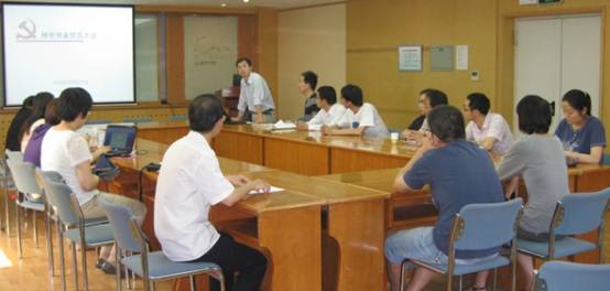 党支部书记周旭主持会议,首先宣布本支部共有正式党员16人,到会13人,3人因在外地出差缺席。