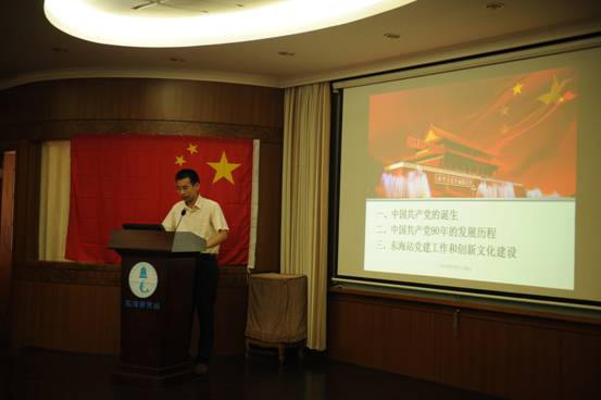 党总支书记胡长青首先简要回顾了中国共产党的诞生和90年来中国共产党的发展历程及在中国共产党坚强领导下国家取得的辉煌成就。他表示值此纪念建党九十周年之际,我们既要缅怀先辈的光辉事迹,发扬党的优良传统,更要清醒认识我们面临的形势和任务,时刻牢记我们所肩负的责任与使命,把对党的热爱转化成实际工作中源源不断的动力,踏实工作,开拓创新。最后,胡书记对东海站近年来的党建工作和创新文化建设作了全面系统的总结,他指出创新文化为科技创新提供了不竭的智力支持和巨大的精神动力,也为党的工作提供了一个新的视角和有效的抓手,作为中科院系统的一员,东海站将一如既往地重视创新文化建设和党建工作,在全面启动和实施的“十二五”规划中,充分发挥党组织的战斗堡垒和党员的先锋模范作用。