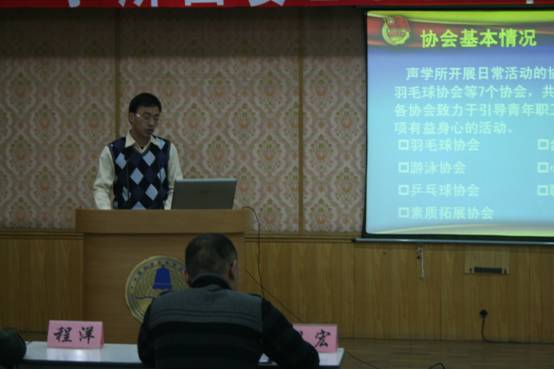 随后,作为先进团支部代表,网络新媒体团支部书记李军作了支部工作总结,所团委委员王世伟代表我所7个社团、协会作了2011年度工作总结,团委委员、研究生会主席郭鑫作了声学所研究生会2011年度工作总结。