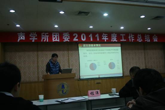 2012年2月9日下午,声学所团委在多功能厅召开2011年度工作总结会,会议邀请了所党委副书记、副所长倪宏、院团委副书记齐嵘、所办公室主任程洋、副主任张莉以及院团委委员、研究生教育主管张云鹏莅临指导。
