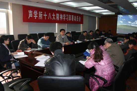 2012年12月6日上午,声学所党委组织召开十八大精神学习部署动员会。党委书记张春华主持会议。办公室程洋主任、来自全所20个支部的支部书记、支部委员以及办公室相关同志参加了会议。