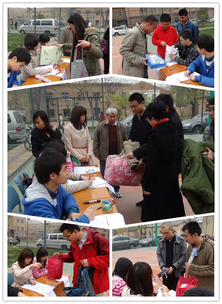 活动倡议一经发出,声学所师生快速响应,来到篮球场参与活动的老师和同学络绎不绝,许多人也纷纷为地震灾区捐赠物资。有的人从家里带来了衣物,有的人把家中的药箱都提过来了,有的人将家中的床垫棉被军大衣等捐献了出来,还有的人专门去买了方便面、水、电池等灾区急需的物资过来捐赠。许多师生将东西放下就走,不愿意留下姓名,只有绑在他们手腕上的绿丝带在述说着,这份爱一直在被传递,这份爱就是声学所人对我们灾区同胞的支持和鼓励!
