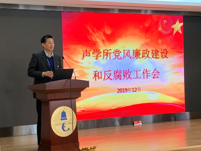 2019年12月27日,声学所召开了2019年度党风廉政建设和反腐败工作会议,所领导、党委委员、纪委委员、研究单元及职能部门正副职领导、所投资公司负责人、工青妇组织负责人、党支部书记及纪检委员等近60人参加了会议。会议由所党委副书记、纪委书记李浩然主持。