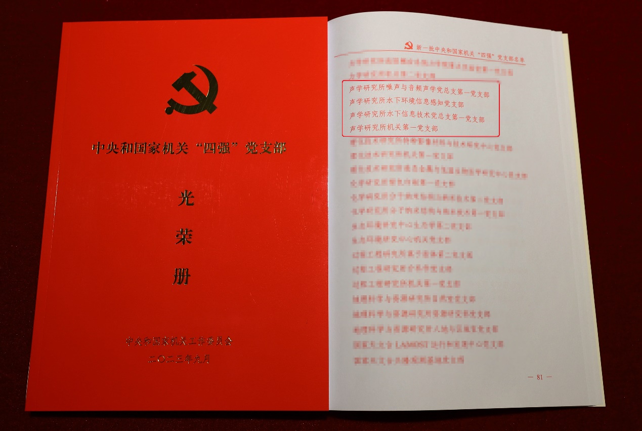 近年来,声学所各基层党组织通过不断强化规范化标准化建设,持续提升党支部政治功能和组织功能,充分发挥党支部战斗堡垒作用和党员先锋模范作用,着力建设“政治功能强、支部班子强、党员队伍强、作用发挥强”的“四强”党支部,以高质量党建引领科技创新高质量发展,不断取得突出成绩。
