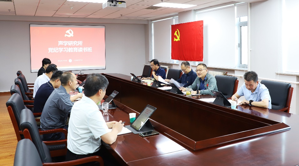 2024年5月27日,声学所党委举办党纪学习教育读书班暨理论学习中心组专题学习会,认真学习新修订的《中国共产党纪律处分条例》(以下简称《条例》)。声学所党委书记倪宏主持并讲话,所领导班子成员、党委委员参加读书班。