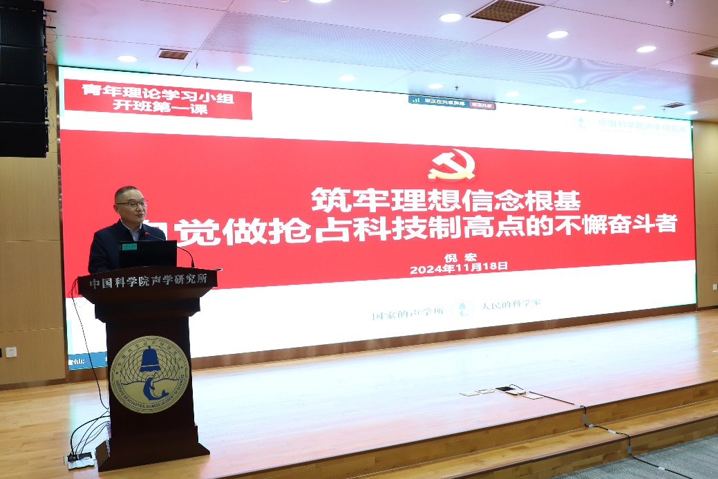 为推动青年坚定理想信念、强化党性修养、提升能力水平,在加快抢占科技制高点、实现高水平科技自立自强中彰显青年担当,2024年11月18日,声学所举办青年理论学习小组成立仪式暨首场报告会。党委书记倪宏出席会议致辞并作开班第一课,青年理论学习小组成员30名参加会议,各党支部青年委员、团学代表及党委办公室工作人员列席会议。会议由党委办公室主任闫玮丽主持。