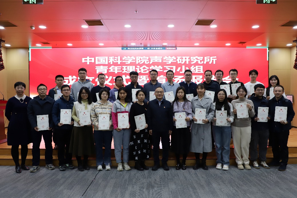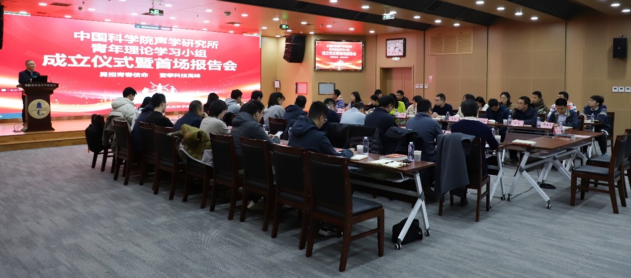 倪宏在致辞中对青年理论学习小组的成立表示热烈祝贺。他强调,中国共产党在建党初期是一群平均年龄28岁的青年人,开启了建党求索之路,带领中国人民闯出了一条通向光明的路;他引用恩格斯提出的“一个民族要想站在科学的最高峰,就一刻也不能没有理论思维”这一经典论断,强调青年同志加强理论学习的重要性。他指出,新时代青年科技工作者,是科研事业的生力军,是建设科技强国、实现民族伟大复兴的主力军。声学所青年理论学习小组是深化青年理论武装、提升能力水平的重要平台,各位青年同志要加强理论学习,敢于啃硬骨头,学以致用,指导实践,相互学习启迪,不断探索前进,用实际行动践行科技报国之志,为实现高水平科技自立自强贡献智慧和力量!