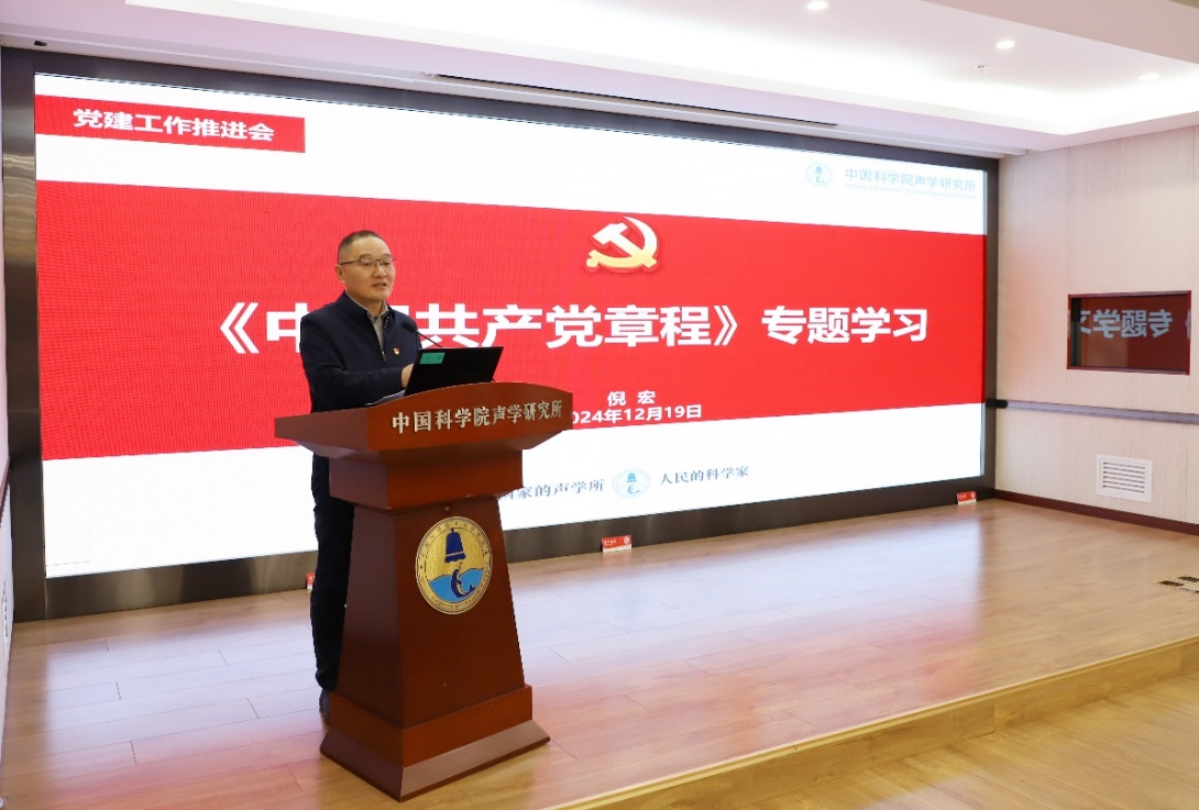 2024年12月19日,声学所在DSP楼多功能厅召开第四季度党建工作推进会,党委书记倪宏,纪委书记王雷,各党支部(总支)书记、副书记、支部委员,科学家精神教育基地讲解员共70余人参加会议。会议由王雷主持。