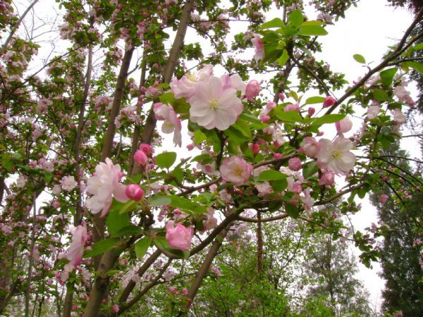 不知不觉中来到海棠观赏区,看到棵棵粉中透白的海棠树,忽然想起席慕容那首《一棵开花的树》: