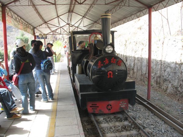 微微的风、绿绿的水、高高的山,峡谷的美景已映入眼帘。景区特有的地龙小火车将大家带入了峡谷,也带入了快乐。其间,程洋副书记还惟妙惟肖地扮演起了广播员,“列车进站了!列车进站了!请大家站在黄色安全线外等车。为避免危险,请让老人和儿童先上车,党员和团员请最后上车!”