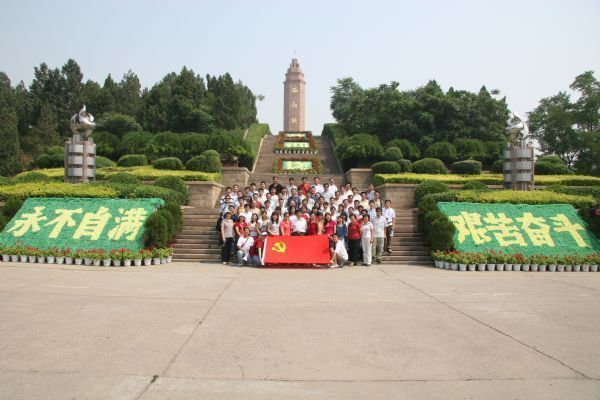 8日中午,经过长途跋涉,我们终于进驻温泉宾馆,稍事休息后,我们前往西柏坡进行参观。“窄窄的山路如扁担,一头挑着山里,一头挑着山外。弯弯的山路似飘带,一头牵着历史,一头牵着未来。”我们的大客穿梭在绵延的山路上,我们的思绪徜徉在历史的回忆中,仿佛又看到了烽火连天的战斗场面,仿佛又看到了军民团结共战的动人场景。不知道不觉中,我们的大客缓缓驶入了革命圣地,首先映入眼帘的就是西柏坡纪念碑。西柏坡纪念碑,叠立在纪念馆后面的山顶上,松柏掩映,光华闪耀。碑名“西柏坡”三个大字系邓小平同志的手迹,碑上镌刻着江泽民同志1991年9月21日参观西柏坡时的题词:“牢记两个务必,建设有中国特色的社会主义。”青松翠柏,花团锦簇,更显纪念碑之伟岸,大家纷纷在碑前合影,留下这历史的见证。