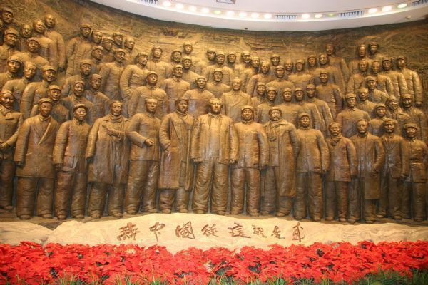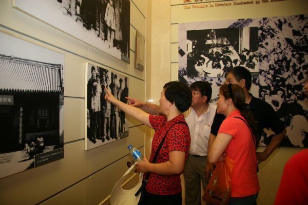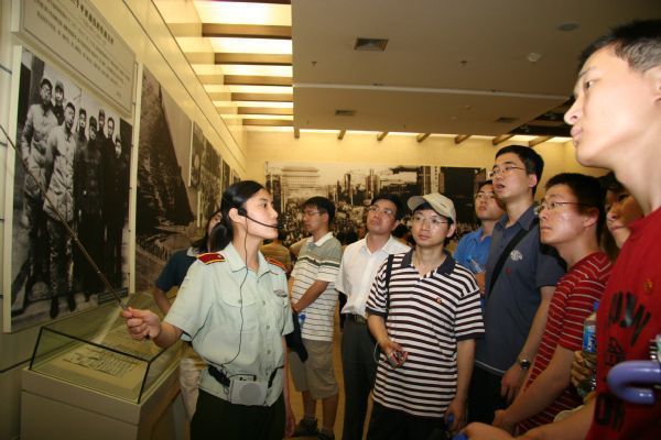 随后我们前往西柏坡陈列展览馆进行参观。在展览馆前的广场上,屹然矗立着毛泽东、朱德、刘少奇、周恩来、任弼时五位书记的铜像,历史地、艺术地再现了西柏坡时期中国共产党第一代领导集体的形象。人物栩栩如生,寓意深刻,充满了胜利的喜悦和对未来的无限信心。在西柏坡陈列展览馆真实记录了党中央在西柏坡期间领导全国军民夺取全国胜利的奋斗历史,充分展示了中国共产党倡导的革命精神和优良作风,大家认真观看陈列展览,回顾战争年代的光辉岁月。整个陈列展览共分12个展室,展览内容以解放战争后期中共中央在西柏坡时期的活动为主线,围绕“新中国从这里走来”的展览主题,运用了大量的文物、照片、资料和塑像生动地展示中央工委和中共中央在西柏坡的伟大革命实践,重点介绍了全国土地会议、三大战役、七届二中全会等重大历史事件,同时对建国后党和国家领导人到西柏坡参观学习的情况进行了介绍。