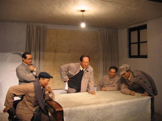 在这里,中共中央召开了包括七届二中全会、九月会议等许多重要会议;在这里,毛主席运筹帷幄,指挥解放军成功进行了震惊中外的辽沈、淮海、平津“三大战役”,在这里,毛泽东写下了几十篇光辉著作;在这里……