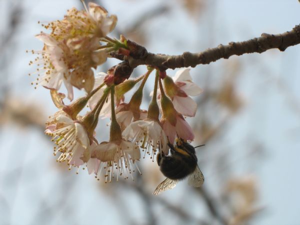 站在近处,嗅着依然源源不绝的花香,刚要感叹“化作春泥更护花”时,却意外的发现,一直蜜蜂,正落于花蕾之间,安静的采蜜。
