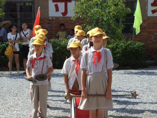揭牌仪式由瑞金市副市长曹瑞荣主持,首先进行了升国旗仪式。虽然在我们看来旗杆等设施未免过于简陋,但孩子们仍然以庄重的神情向国旗行整齐的举手礼,并在升旗仪式后齐声高呼校训“弘扬长征精神、争做时代新人”。