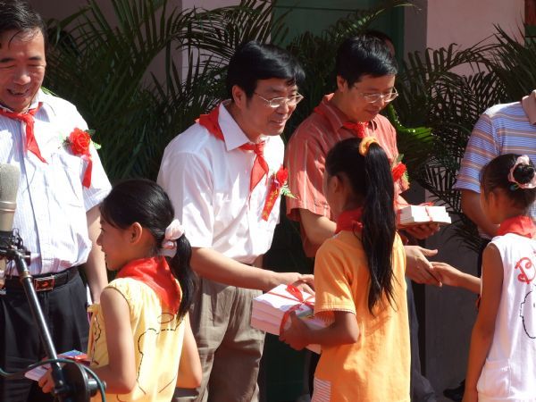 2007年8月6日上午,“声学所凤岗长征小学”揭牌仪式在瑞金壬田镇凤岗小学举行。党委副书记王小民率领声学所党员代表团参加了该仪式,并将全所职工捐赠的图书转交给凤岗小学。