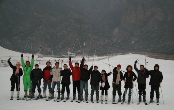 滑了一会儿初级雪道,大家就有了更高的目标,纷纷想去中级道体验一下。登上中级雪道,从高处往下看,就有些害怕了,有种想逃的冲动。但是,只能前进,不能后退。当我们鼓足勇气往下冲的时候,才真正体验到了快感——速度带来的快感,更是挑战极限的快感。虽然大家都是连滚带爬地滑下来,摔了很多次,但是我们异常兴奋,因为我们体验到了挑战极限、战胜自我的成就感。