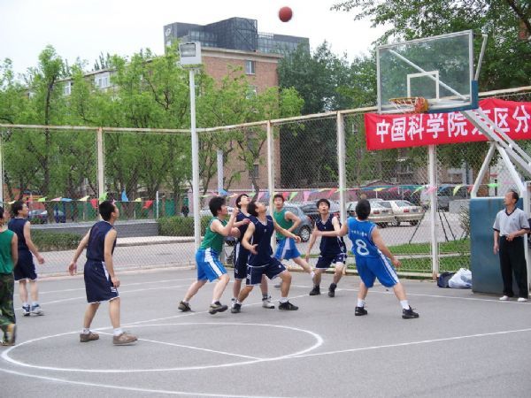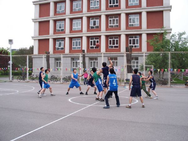 比赛开始前球员们早早就在场上开始了热身运动。各自投投球,运运球,练起了手感。比赛一开始,双方便展开了激烈的对攻,比分交替上升。半场结束后,双方战成8:9。下半场开始后,战况与半场并没有很大变化,仍是你追我赶,最后声学所以两分之差16:18输给对手。所里的许多同学都来到球场为球员呐喊助威,现场的气氛相当的热烈。团委张云鹏书记还从繁忙的工作中抽出时间亲临现场为球队加油。