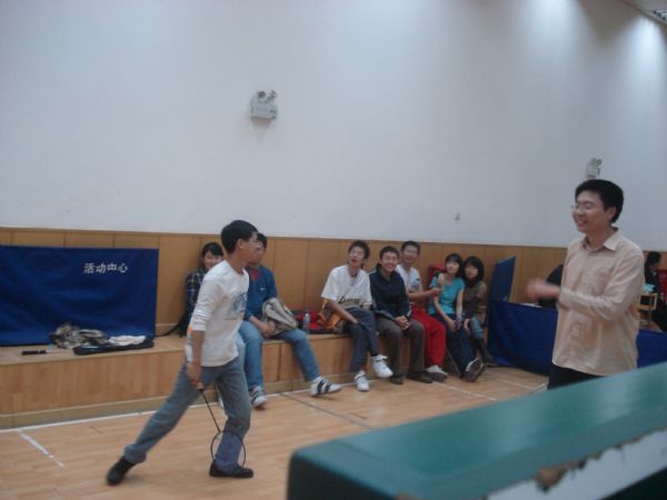 比赛采用团体赛形式,分为男单、女单、男双、女双、混双五场比赛,五战三胜。带着上午输球的遗憾,研二的队员们一开始就发动了猛烈的攻势,快速拿下在男单和女单两场比赛,赢得了领先优势。随后,研一的队员渐渐稳住了阵脚,再加上场边观众的助威,一度扭转了形势。经过几局精彩的对决,最终,研二还是取得了比赛的胜利。