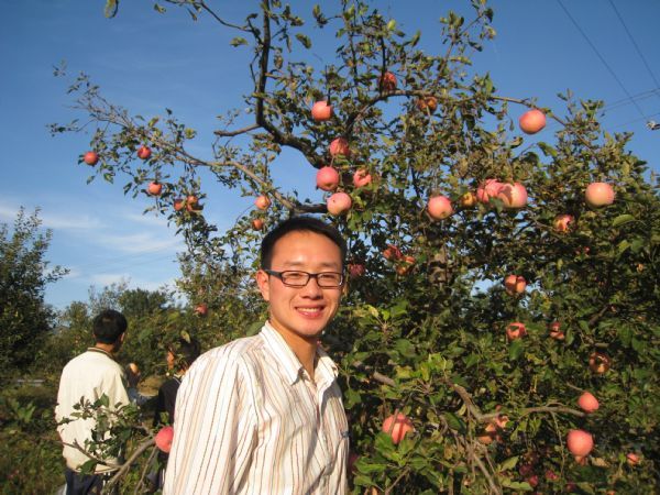 下午,我们的活动是去果园采摘。我们首先来到实验室去年采摘的果园,可惜今年果园不景气,与去年相比,果实显得又小又少,我们决定换一个果园。路上,我们停在一片栗子林旁,何世堂老师等人下车去拾栗子,我觉得挺新鲜的,也加入了。林中栗子树耸立,我们以为栗子会很多,但遍地看到的几乎全是空果壳。我们没有放弃,拿着树枝,像大海捞针似的,拨开树叶或果壳,寻找被遮盖的栗子。最后,我们的辛苦得到回报,每人找到了一些,虽然不多,但我已很满足了。