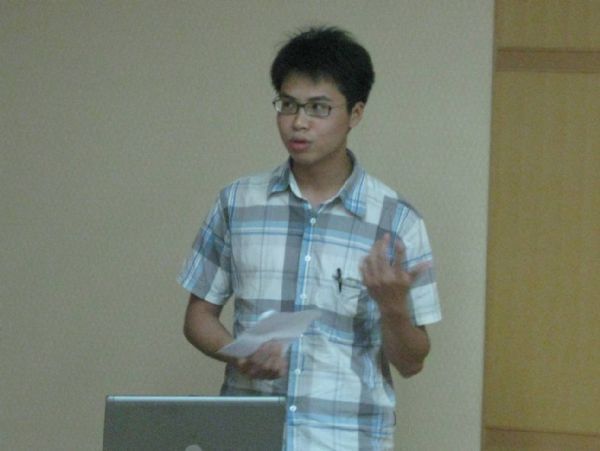 最后出场的是,噪声与振动重点实验室理学博士、“三好学生”(2006年、2008年),“三好学生标兵”、全国青年声学会议优秀论文奖(2007年),中国科学院优秀博士生“朱李月华”冠名奖(2008年)获得者,郑成师师兄,他从“如何解决‘工程’与‘研究’的矛盾?”和“如何带着问题学习?”两个方面进行论述,结合自身科研的体会和成果,为大家上了一堂“语音增强”方向的精彩课堂。首先,由于“工程=实现”、“工程=机械模仿”、“工程=应付项目”、“工程=做完了事”等思想的作怪,所以“做‘工程’人写论文难”。师兄提出自己的见解:不论声学,还是信号处理,都属于应用研究;应用研究,顾名思义,就是要在“应用”中,发现问题,然后进行“研究”。通过自身对“相关函数估计”改进的例子,说明只要用心思考,各个领域都会有我们的一份空间的。最后郑师兄提出解决工程与研究的矛盾的方法,用一句话说,就是把“工程”当作“研究”;如果这么做了,写论文就不再是痛苦的事情了。师兄同时也提倡大家“带着问题学习”,也列举了自己对 “语音增强‘谱减法’”说明这个方法,很形象很容易接受。(掌声)