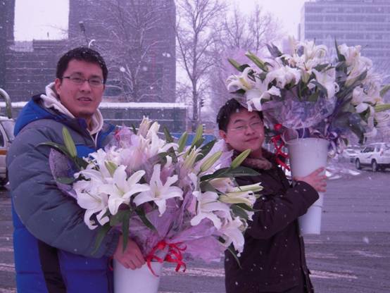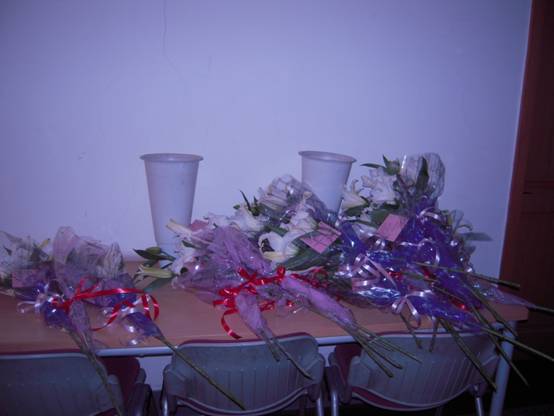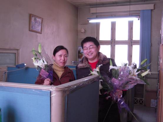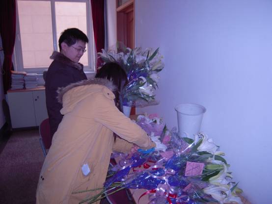 随后大家就开始了鲜花的整理、装饰工作,因为整个支部所属实验室、办公室分布在西配楼、DSP大楼、院图和财智大厦等多处,女职工和女学生将近30人,为保证没有遗漏的将问候送到每一个人手中,必要的准备和整理、分配工作有条不紊的进行着。