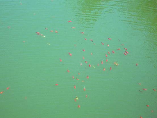 经过两个小时的努力,所有人顺利登顶,比赛成绩也见分晓。坐在山石上,享受着暖暖的阳光、温情的山风,宜人的美景,使人气爽神舒,忘却了登山的劳累。小憩后,又开始了下山的休闲游。位于半山腰的太和水库吸引了众人的目光,水库四周群山环绕,青松掩映,杜鹃花开得正艳,水库上游波光粼粼,下游成群的锦鲤在碧绿的水中悠然自得来回穿梭,美不胜收。另有一支探险小分队从险峻的霸王寨下山,这里流传着楚霸王的趣闻轶事以及虞姬的美丽传说。