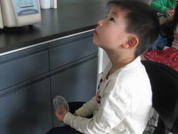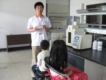 周六一早我们首先来到动物所门口,拿了几个关于动物的宣传页,冰冰为了要一个风筝也抢着猜了一个谜语,因为动物博物馆已经去过两次了,所以我们就直奔微生物所。第一站是科普探索实验室,志愿者首先介绍了微生物的一些相关知识,然后让冰冰在培养基上留下自己手印,回头可以通过电子信箱收到培养出来的菌群照片。