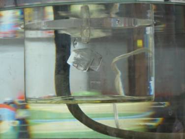 三个小朋友最感兴趣的就是我们的最后一站:低温试验。小金鱼放入液氮中几分钟后再放回水中,过了一会,又开始慢慢动起来了。新鲜的树叶放进去,一拿出来立刻用硬物敲击,马上就变成了碎片,如果不动慢慢还可以恢复。小朋友开始还不知道天高地厚地用手摸那个液氮挥发的白气,觉得很好玩,可一看到变成碎片的树叶,马上知道了厉害。