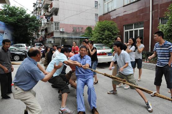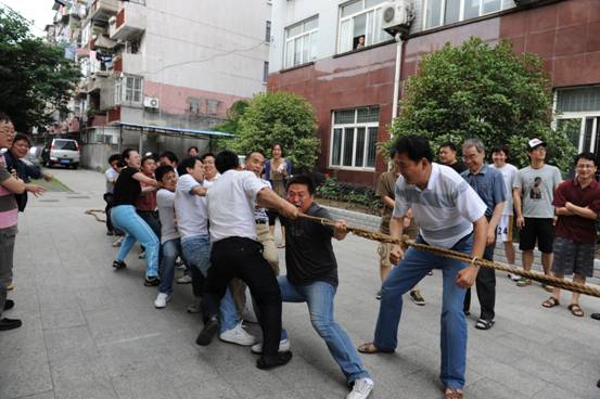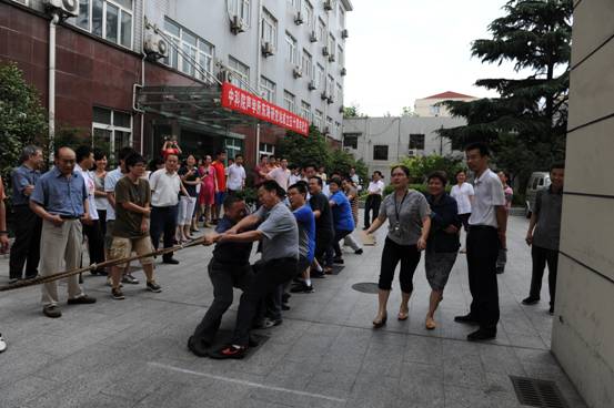 比赛一共分为三场,机关组与第一研究室组成一队对抗第五研究室,三、四研究室组成一队对抗第二研究室,再由前两场中的胜出方对阵决出最终获胜方。随着裁判的一声哨响,各队人马鼓足了劲,涨红了脸,抓紧了绳,全力以赴,努力争夺。一旁的拉拉队比参赛者还起劲,加油声、呐喊声、欢笑声此起彼伏。充分体现了全体职工团结友爱、顽强拼搏、不服输不言败的精神风貌。这正是:赛场上,热汗淋淋;赛场下,加油助威,那场面好不热闹!经过一番激烈的角逐,第二研究室终于赢得了此次比赛的冠军。