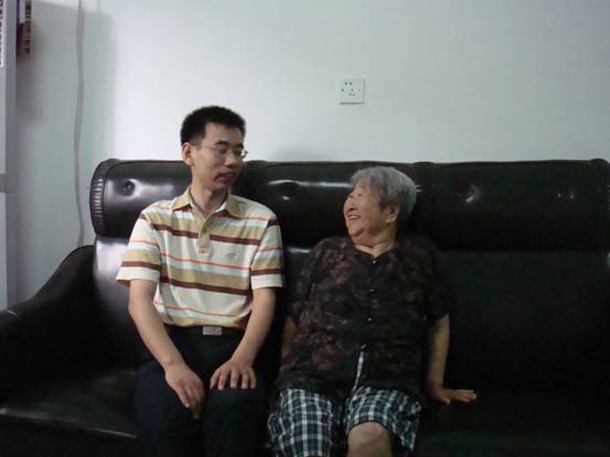 驱车四个小时后抵达淮安,老人早已在家等候。杜淑滨女士今年已是八十一岁高龄了,满头银发,精神矍铄。她激动地谈起老站长当年的风采,住院期间的情况,曾经在东海站的生活点滴并关切地询问站内老同志的情况。。。。。。老人还拿出了珍藏多年的照片和当年介绍老站长热情扶植中青年先进事迹的剪报,送给胡站长作为东海站的历史收藏。胡长青站长表示感谢,他向老人介绍了东海站现在的发展情况和取得的成绩,邀请杜女士有机会来东海站看看,老人高兴地应允了。杜女士家已是四世同堂,得知东海站领导专程从上海赶来看望老人都很感动,千里相聚,大家谈笑风生,其乐融融。。。。。。