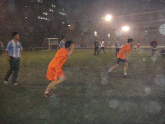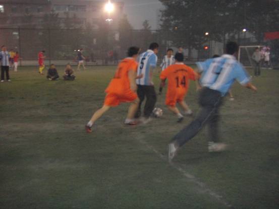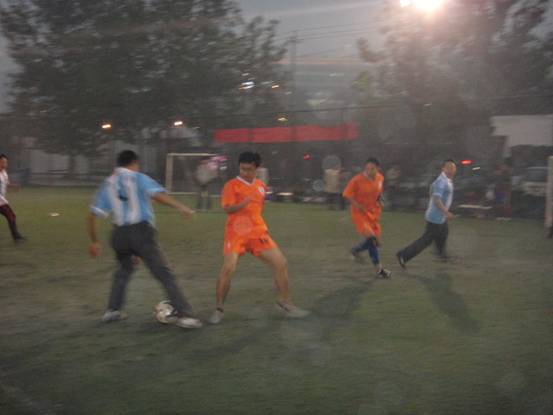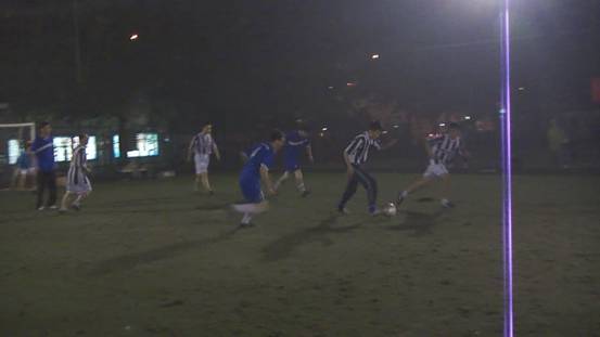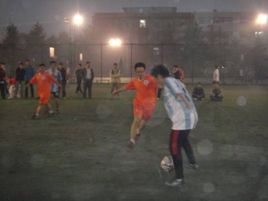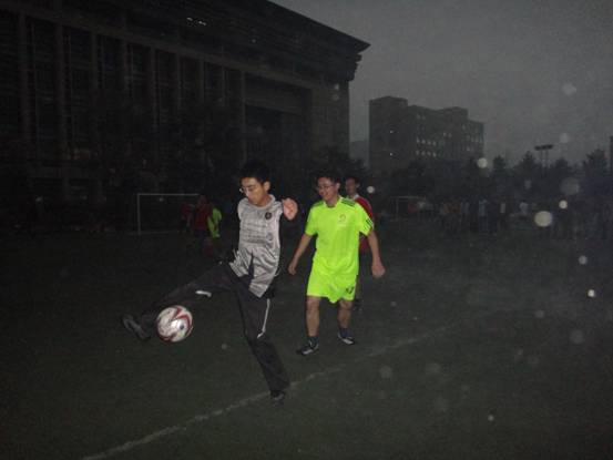接着进行的是海洋声学与水声环境的比赛。虽然当时天色已晚,且北风寒冷,但是热情如火的队员们在短暂的热身运动后纷纷进入场内。拥有年轻的研一战将的海洋声学一上场就气势十足,在经验丰富的老将与勇猛年轻的小将们的配合下,率先进了第一个球。而后,水声环境的队员们也开始进入状态,球场上他们灵活的身影给观众留下了深刻的印象。最终海洋声学以5:0的比分完胜水声环境。