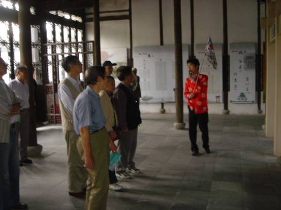 下午游览了古镇。枫泾古镇以优雅古朴、恬淡农家的气质获得“中国历史文化名镇”之誉。古园小桥流水,风情婉约灵秀,几条静静的小河贯穿小镇,两边的民宅依河而建。 “烟销日出不见人,唉唉一声山水绿”。元代致和桥、枫溪长廊、程十发祖居、三百园、枫泾三桥、丁聪漫画陈列馆等景点,都吸引着老同志们驻足细看,放松心情,在水乡安逸的氛围中流连忘返。。。。。。