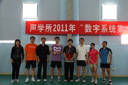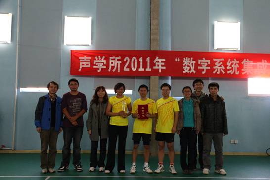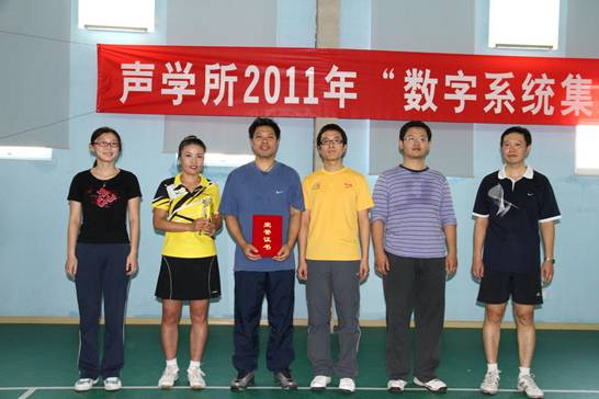 声学所2011年“数字系统集成杯”羽毛球团体赛经过八天的激烈比赛,于2011年11月18日下午两点在中关村体育中心羽毛球馆顺利闭幕。闭幕当日分别是超声物理与探测实验室对阵数字系统集成实验室的季军争夺战及通信声学实验室对阵声场声信息国家重点实验室的冠军争夺战,最终声场声信息国家重点实验室获得冠军,通信声学实验室获得亚军,超声物理与探测实验室获得季军。出席闭幕式的领导有工会主席李平,工会副主席、所务助理周秀霞,数字系统集成实验室主任王东辉研究员。