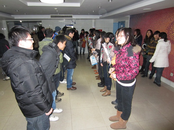 班委同学提前做了策划,购买了鲜花,召集男同学前往青年公寓G座楼下,在活动之前,女同学并不知道活动内容,当男生手拿鲜花出现之时,能看得出女同学的惊喜。声学所京区2010届硕士共有81人,女同学仅22人,所占比例小,但是在共同生活、学习中,大家在一起努力学习、科研,建立了深厚的友谊,在女生节到来之时,通过献花这样一个小活动,向身边的女同学表达关爱、祝福,深化了同学友谊,增强了班级凝聚力。