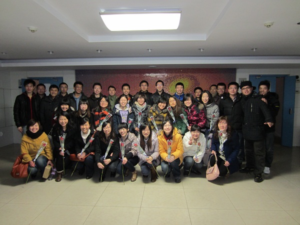 2012年3月7日,恰逢一年一度的女生节,声学所2010届硕士班男同学手持鲜花,向本班女同学送花,同时送出对女同学的祝福,给女同学过了一个难忘的女生节,增进了同学们之间的友谊。