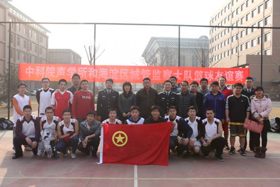为了丰富我所职工和学生的业余生活,增加与外单位的联系交流,本着增进友谊、锻炼体魄、切磋球技的原则,我所篮球队与海淀区城管大队于3月20日下午在声学所篮球场展开了一场篮球友谊赛,海淀区城管大队陈海宏处长以及中关村分队泉全队长带队前来参赛,我所周秀霞所务助理、行政资产处程源军副处长出席了该次活动。