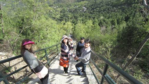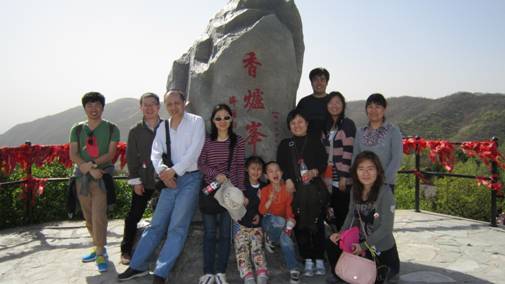 一路沿石阶而上,虽然山不高,却也有几处陡峭之处,对于习惯于久坐的我们,还颇有几分挑战,这时候就看出平时锻炼的重要性了,有的同事一鼓作气,三步并作两步,非常轻松就上去,有的同事却气喘吁吁,需要中途歇息了。三点钟左右,大部分同事都到了香炉峰,这里凉风习习,空气清新,视野宽阔,令人心旷神怡。俯瞰下去北京城尽收眼底,唯一美中不足的是笼罩在城市上空若隐若现的尘雾。