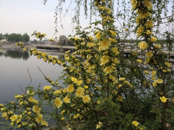 到达上庄水库后,周遭的景色让大家倍感舒适。远离了闹市的喧嚣与嘈杂,青山绿水间显得那么安静,湖面似乎是静止的,蓝天倒映其中仿佛触手可及。岸边的杨柳,路边不知名的小花都更衬托着这一份静谧之美。