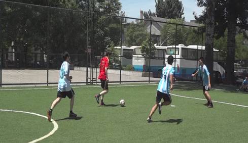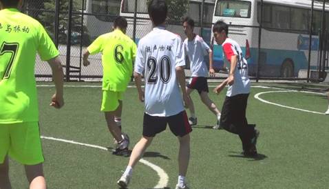 接下来是噪声与振动队(黄绿队服)和超声物理队(白色队服)争夺冠军的比赛。噪声队借助自身高超的球技不断组织快攻,在一次中场抢断后,成功将球送入对方球门,确定了领先的局势。虽然超声物理队暂时落后,但他们依然沉着应战,等待机会反击。上半场噪声队以3:1领先。