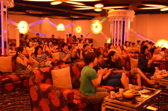 当天晚上,在下榻的宾馆内举办了妇女联欢会。在这场特别的巾帼联欢会上,各位女同志化名为各路女中豪杰、历史人物、影视名人等,一眼望去,宋氏三姐妹,奥黛丽·赫本,伊丽莎白二世纷纷在座。晚会在在击鼓传花的鼓点声中拉开序幕,被击中的学生和老师到台上为大家献唱或献舞,在欢快的歌声中,晚会的气氛不断被推向高潮。晚会的第二个部分是做游戏,“你来比划我来猜”,“背气球”,大家参与的积极性很高,最终配合默契的搭档抱得奖品归。晚会中最令人期待的无疑是抽奖环节,在期待又刺激的气氛中,被抽中的各路名人纷纷走上领奖台。持续了2个小时的晚会,最后在大家欢快的歌声中结束,让人意犹未尽。