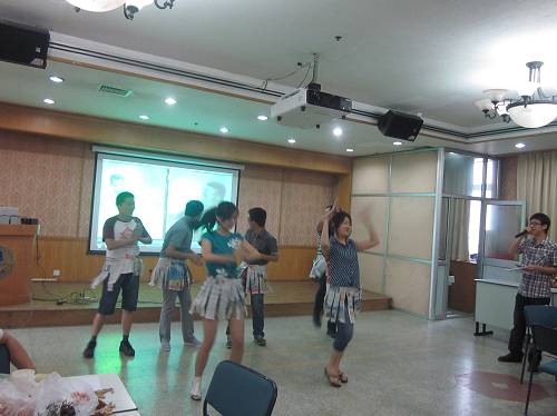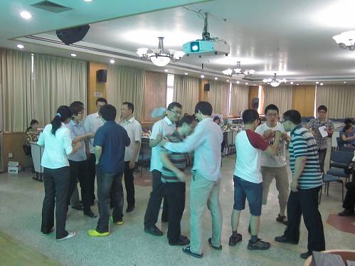 欢送会由研究生会文艺部精心策划,以“欢乐”为主题,希望能带给各位毕业生多一些快乐美好的回忆,少一些离别伤感的愁绪。现场给大家准备了各种零食,好玩的游戏和精彩的节目。除了2012届毕业生之外,还有很多为师兄师姐带来祝福的低年级同学。他们跟师兄师姐们一起做游戏,这些精心准备的游戏如合力吹气球、眉目传情、椅子渡河等都需要大家相互配合,在玩的同时增进了交流。游戏的惩罚环节也是欢乐多多,搞怪的惩罚手段让大家忍俊不禁。多才多艺的师兄师姐们还为大家献上了精彩的节目,了得的唱功让大家很是惊艳。不知不觉两个多小时的欢乐时光就过去了,欢送会以一首抒情的合唱《朋友别哭》收尾,歌曲道出了大家彼此的心情,有毕业生的依依不舍,也有低年级同学对师兄师姐的真挚的祝愿,虽然大家即将分离,但是心永远在一起。席虽散,情难散。