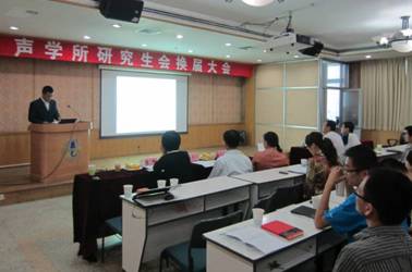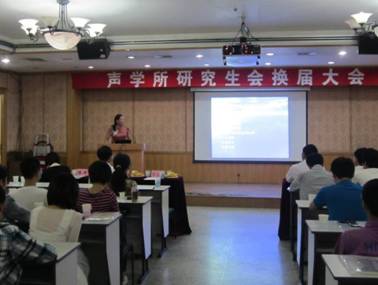 2012年9月20日下午2:30,声学所研究生会换届大会在DSP大楼多功能厅成功举行。出席此次大会的有马晓川副所长,人教处任小燕老师、李辉老师,团委书记崔杰老师,以及兄弟院所的学生会代表和第十届研究生会成员等。