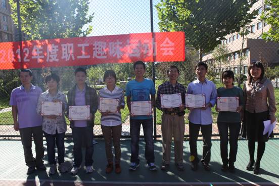 经过各项目的激烈角逐,全部比赛顺利结束。最后是激动人心的颁奖仪式,所工会常务副主席周秀霞老师宣读了比赛结果,所工会主席李平老师为每位获奖职工颁发奖状并向他们表示祝贺。