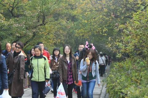 之后一行人展开了爬山活动,先到达的小组在山顶合影。