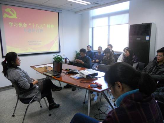 2012年12月18日上午,高性能网络实验室党支部开展了学习领会“十八大”精神专题学习研讨会,本支部共有党员22名,出席20名,其中2名党员在外开会,并提前向党支部请假说明。首先大家通过培训ppt资料深入学习、全面领会党的十八大精神,进一步推动基层支部所有党员学习宣传贯彻十八大精神向广度和深度拓展。
